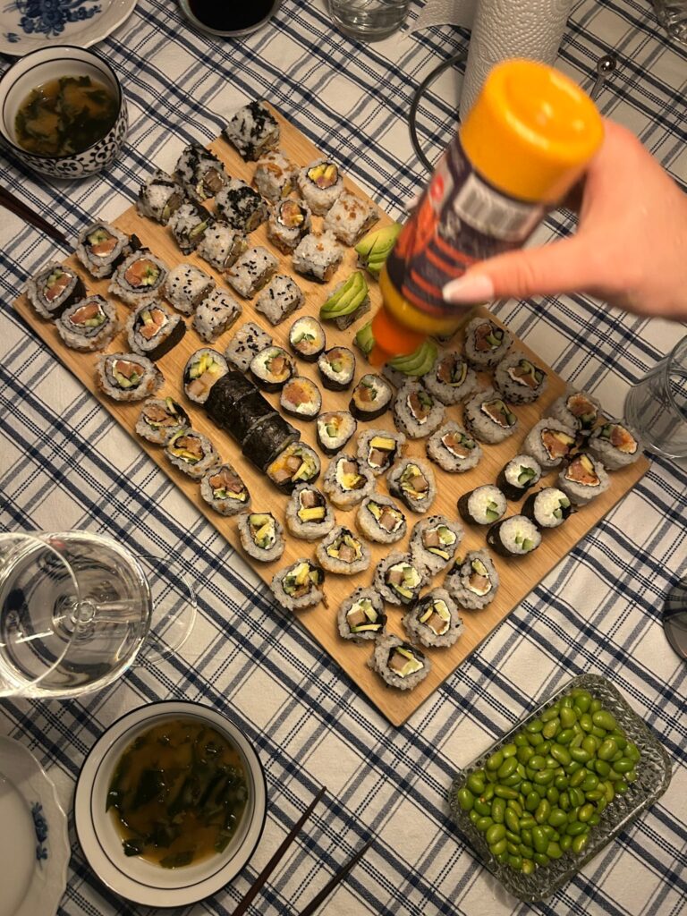 Hemgjord sushi har det blivit också (Wilmas vän som gjorde, men vi hjälpte lite – lovar). Och nu har jag en matig julkalender från Smaksalt. Men ja, det går ju över i vintern.
