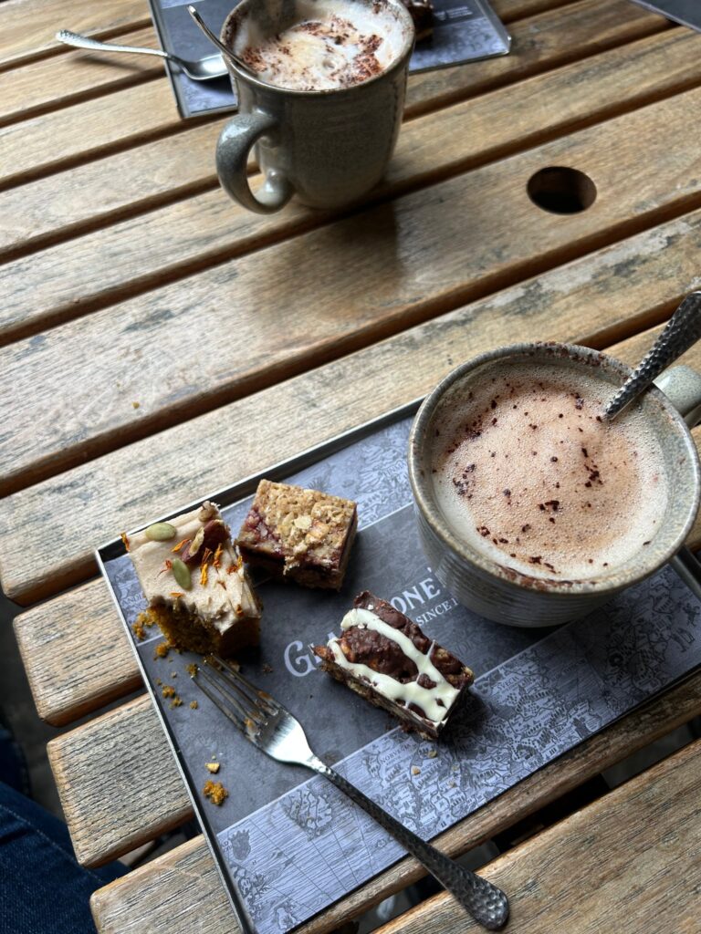 Så vi lyckades hitta lite mysiga ställen för frukost. En morgon åt jag en ”Scottish breakfast” – aka en English breakfast med haggis. Gott. Verkligen.